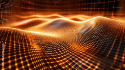 Wall mural : Abstract orange grid network digital wave data flow visualization