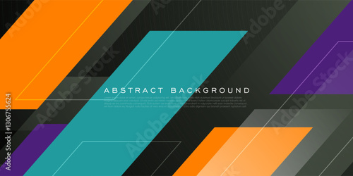 Wall mural : Abstract overlap shapes on dark 3d background - orange, green, and purple color pattern with lines -