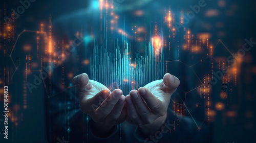 Wall mural abstract palm hands with global network connections, innovative technologies in the field of science - Wall murals Wall mural abstract palm hands with global network connections, innovative technologies in the field of science - Wall murals