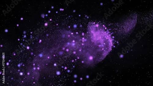 Abstract particle stream of glowing purple dust moving through deep space, seamless loop backdrop, mWall mural