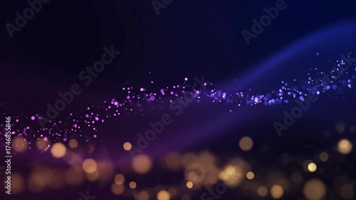 The watermark will not be included on Wall mural.: Abstract particle wave background - this video features a dark background with streams of purple and