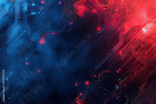 The watermark will not be included on Wall mural.: Abstract pattern of dark blue and red colors with glowing light elements and lines, perfect for tech