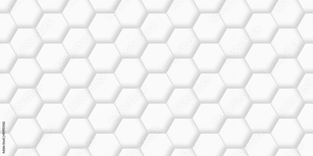 Wall mural abstract pattern with hexagonal white and gray technology line paper background. hexagonal 3d vector