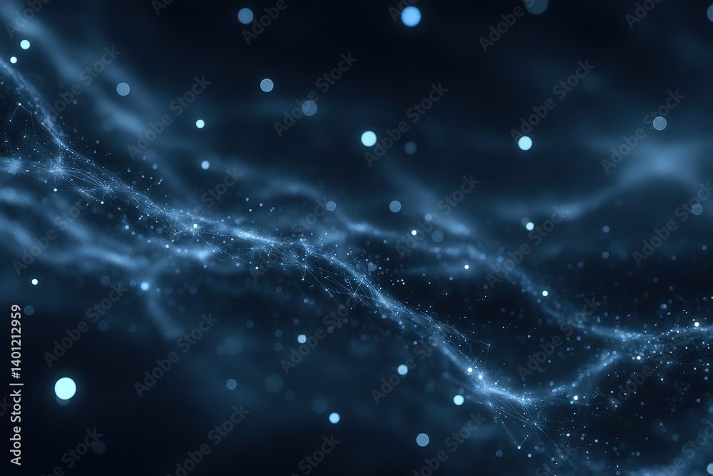 The watermark will not be included on Wall mural.: Abstract patterns of light with glowing particles in a deep blue background representing cosmic them