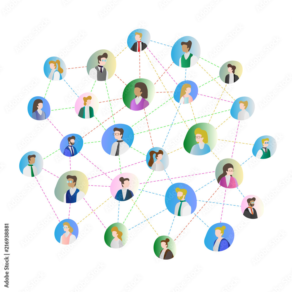 Wall mural abstract people connection vector illustration. business or leisure gathering using acquaintance. hu - Wall murals Wall mural abstract people connection vector illustration. business or leisure gathering using acquaintance. hu - Wall murals