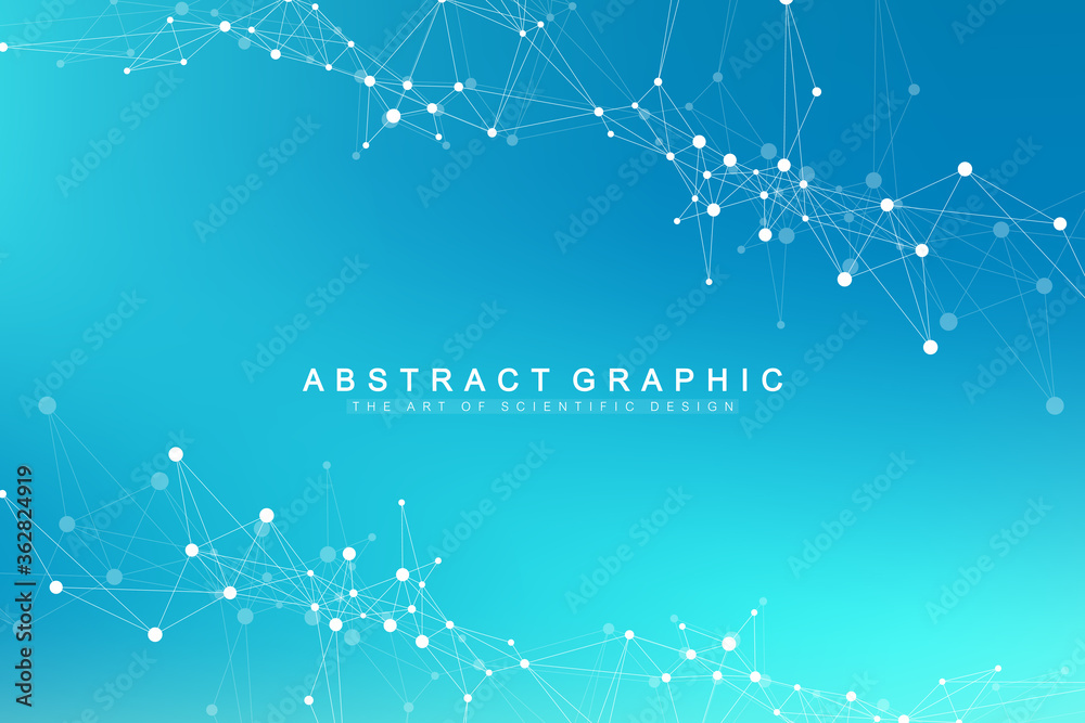 Wall mural : Abstract perspective background with connected line and dots - network and connection background for