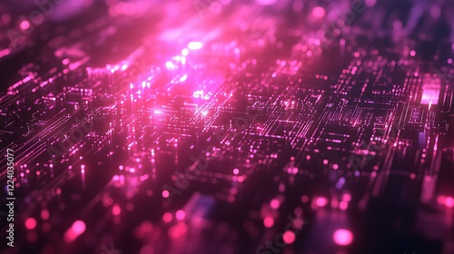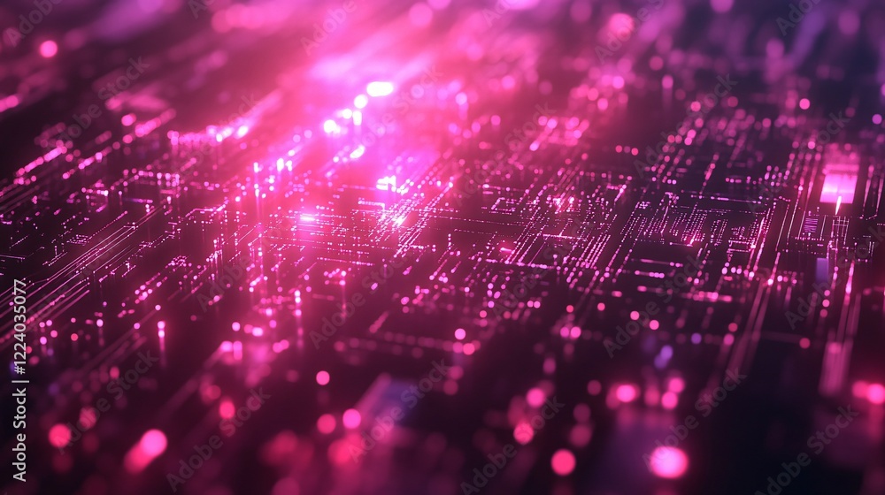 Wall mural abstract pink circuit board technology background digital network glowing lines data stream high - Wall murals Wall mural abstract pink circuit board technology background digital network glowing lines data stream high - Wall murals