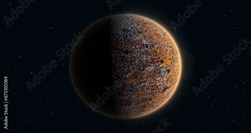 The watermark will not be included on Wall mural.: Abstract planet red rusty realistic futuristic round sphere against the background of stars in space