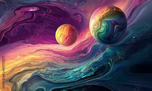 The watermark will not be included on Wall mural.: Abstract planets with colorful cosmic swirls with ai generated -