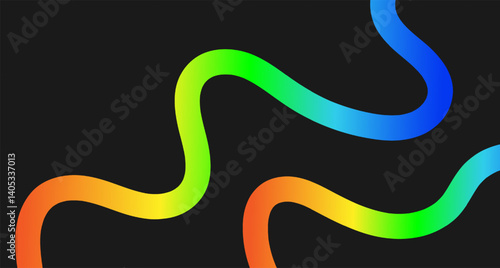 Wall mural : Abstract playful background with neon gradient wavy line - backdrop with organic curvy curly stripe -