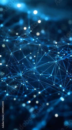 The watermark will not be included on Wall mural.: Abstract plexus structure forming connections and nodes over a dark blue background with glowing poi