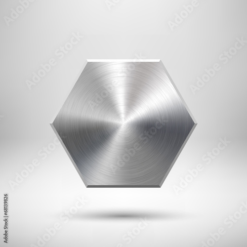 Wall mural abstract polygon button template with metal texture - Wall murals Wall mural abstract polygon button template with metal texture - Wall murals