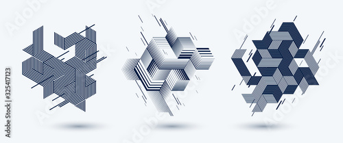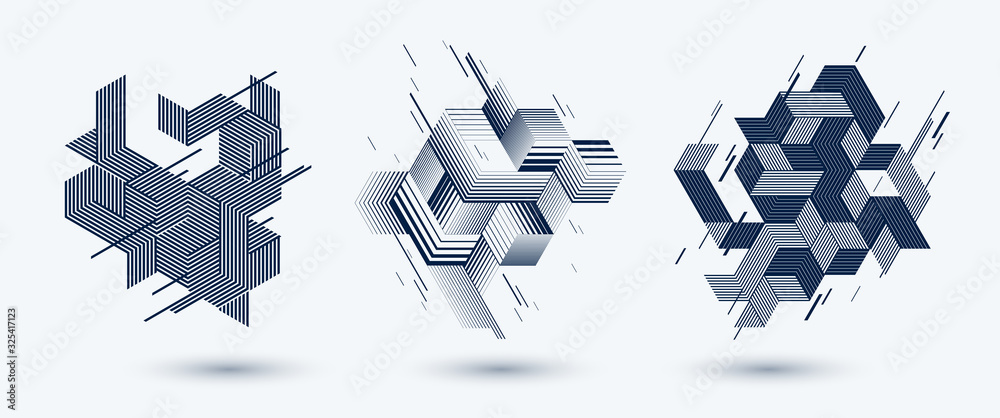 Wall mural abstract polygonal backgrounds with stripy triangles and 3d cubes vector designs set. templates for