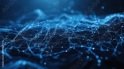 Wall mural : Abstract polygonal network background with lines, dots and glowing particles, plexus effect, artific