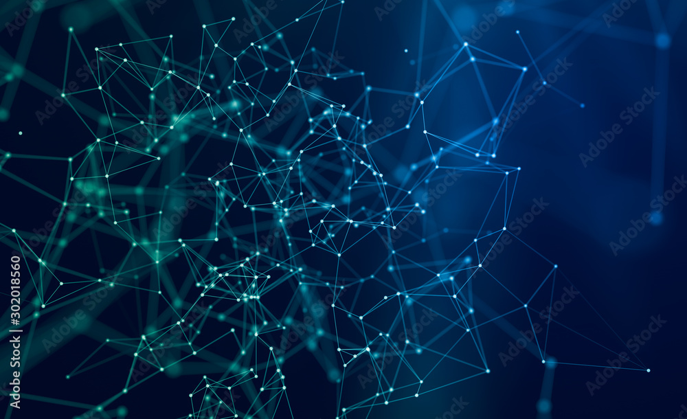 Wall mural abstract polygonal space background classic blue with connection lines and dots for tech. - Wall murals Wall mural abstract polygonal space background classic blue with connection lines and dots for tech. - Wall murals