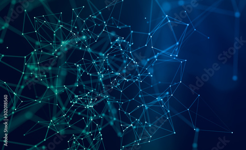 Wall mural : Abstract polygonal space background classic blue with connection lines and dots for tech -