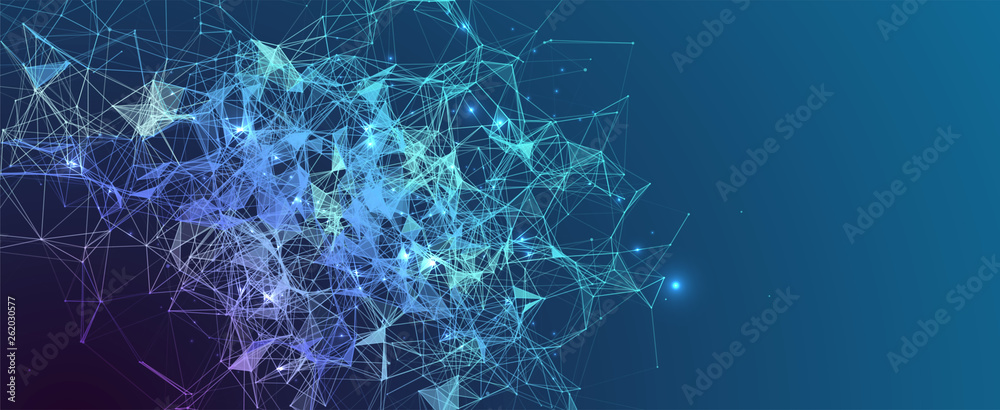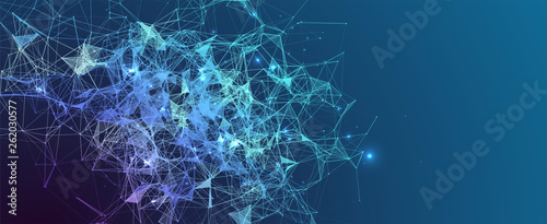 Wall mural : Abstract polygonal vector science background with connecting dots and lines -