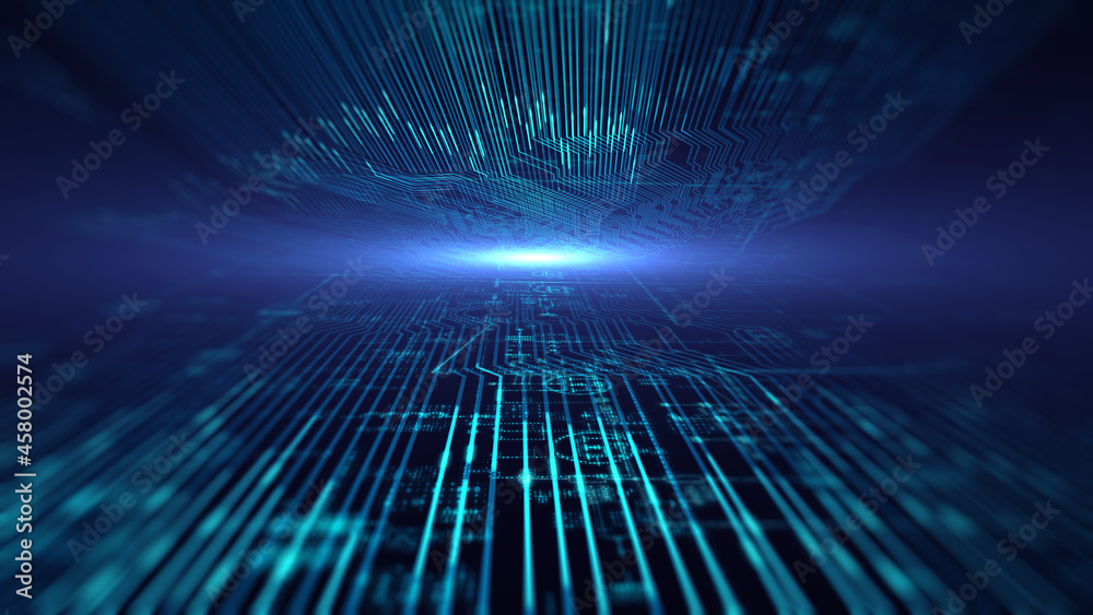 Wall mural : Abstract printed circuit board futuristic server/3d illustration - the abstract mother server is proc