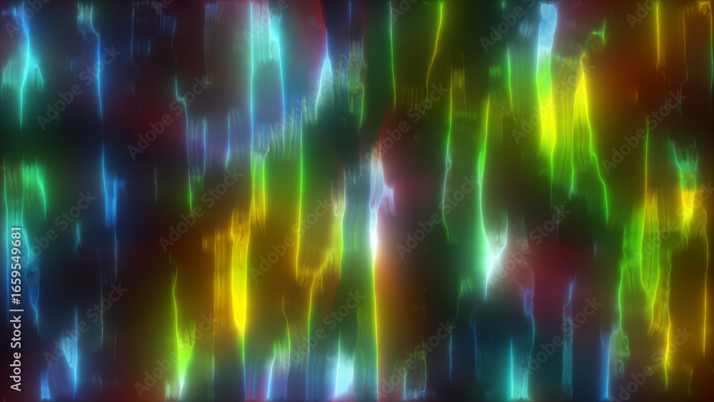 The watermark will not be included on Wall mural.: Abstract prismatic pattern with vertical neon lines, creating a colorful and dynamic rainy atmospher