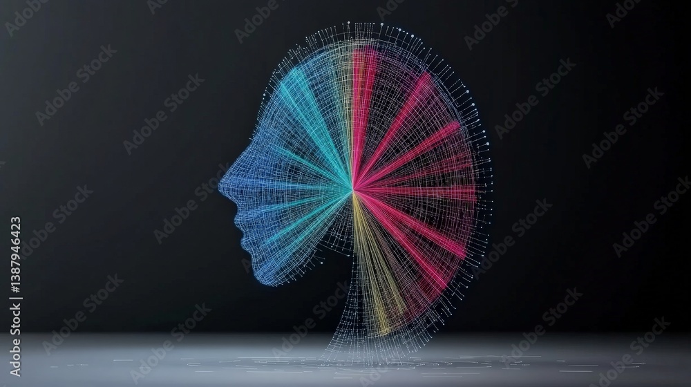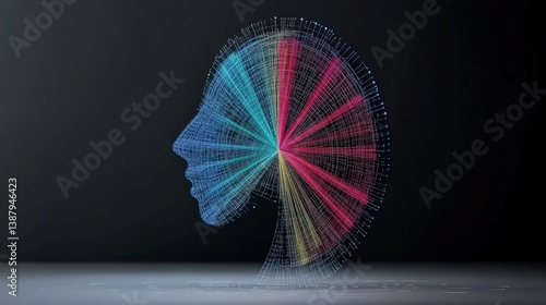 The watermark will not be included on Wall mural.: Abstract profile of human head with colorful lines and patterns