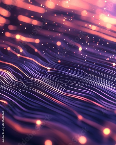 Wall mural : Abstract purple and orange flowing lines with bokeh effect