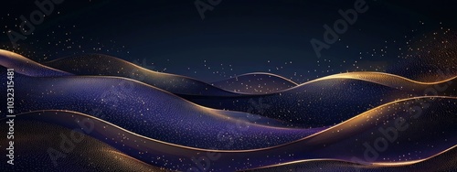 Abstract purple and yellow flowing lines with dotted pattern on dark background generative aiWall mural