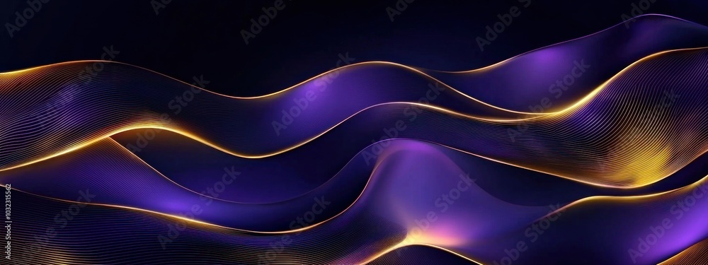 Wall mural : Abstract purple and yellow flowing lines with dotted pattern on dark background generative ai