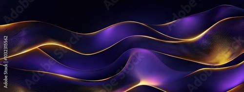 Abstract purple and yellow flowing lines with dotted pattern on dark background generative aiWall mural