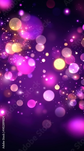 Wall mural : Abstract purple background with glowing bokeh lights and sparkling stars creating a magical and fest