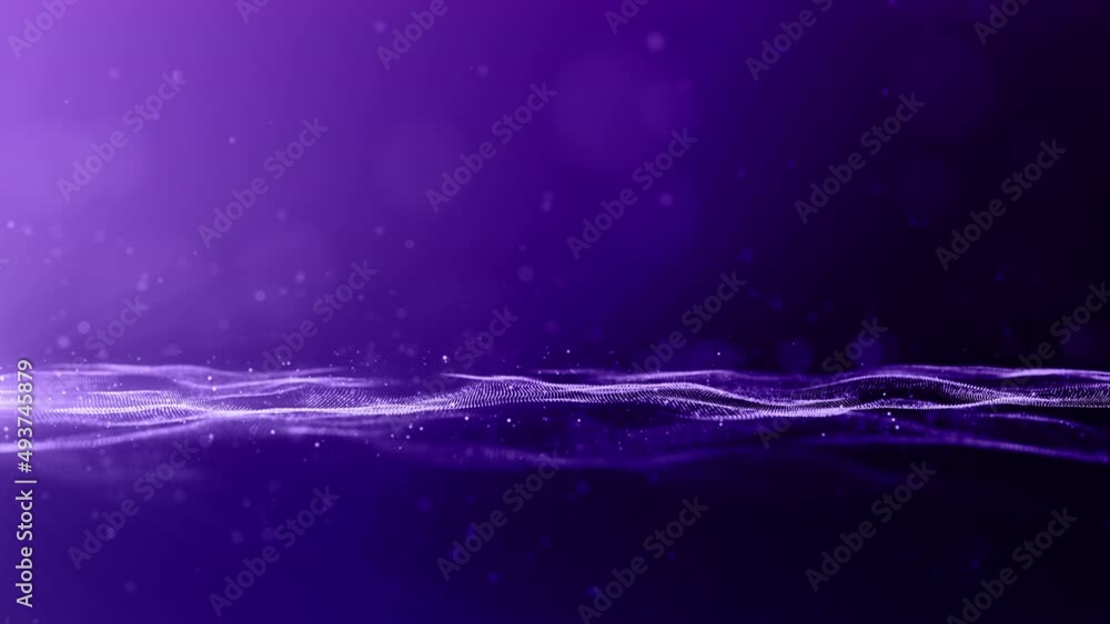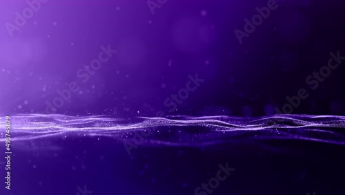 The watermark will not be included on Wall mural.: Abstract purple color digital particles wave flow with bokeh and lighting background, seamless loops