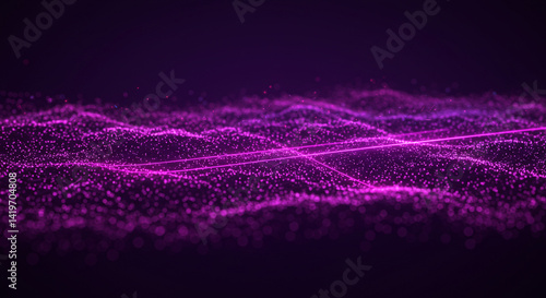 Wall mural abstract purple landscape with glowing particles and lines on a dark background design element