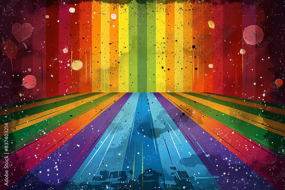 The watermark will not be included on Wall mural.: Abstract rainbow floor with digital effects creating a futuristic and vibrant visual experience