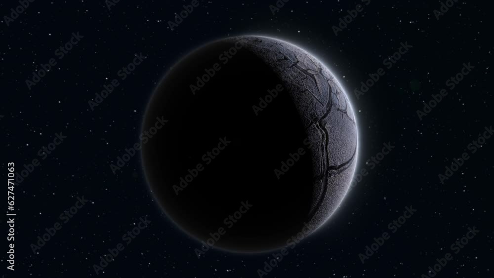 The watermark will not be included on Wall mural.: Abstract realistic space planet round sphere with a stone relief surface in space against the backgr