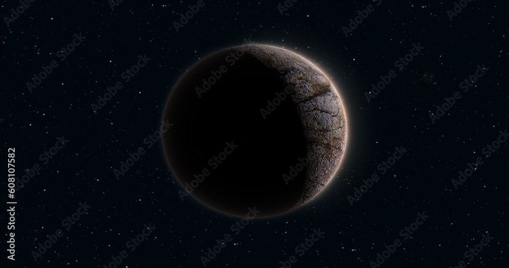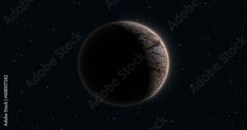 Wall mural abstract realistic space planet round sphere with a stone relief surface in space against the backgr
