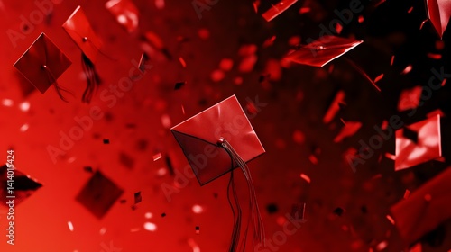 Abstract red and black background with floating geometric shapes and light effects - red graduation bWall mural