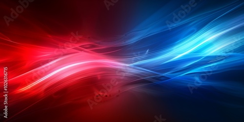 Wall mural abstract red and blue light waves flowing smoothly against a dark background, creating a futuristic  - Wall murals Wall mural abstract red and blue light waves flowing smoothly against a dark background, creating a futuristic - Wall murals