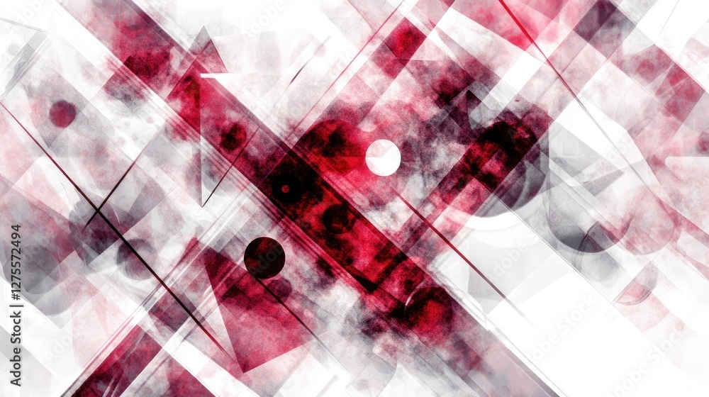 The watermark will not be included on Wall mural.: Abstract red and white geometric background with dynamic shapes