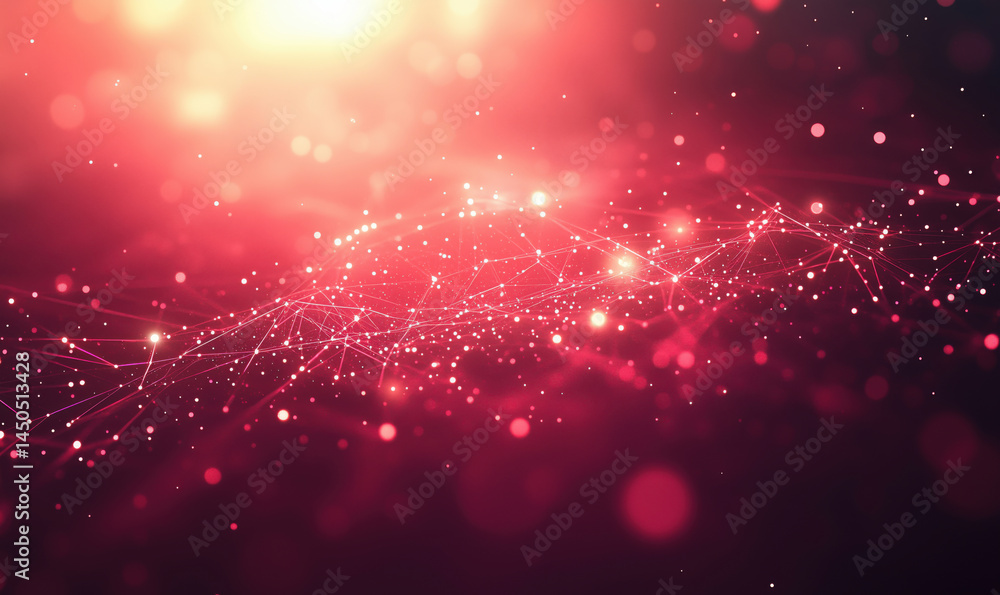 Wall mural abstract red digital background with glowing particles and interconnected lines. - Wall murals Wall mural abstract red digital background with glowing particles and interconnected lines. - Wall murals