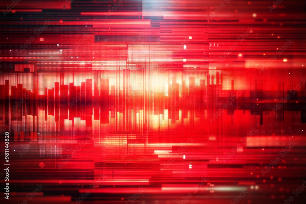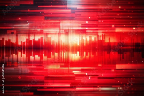 Wall mural : Abstract red digital background with sparkling lines and shapes