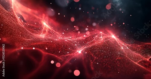 Wall mural abstract red flowing wave of particles, with light and bokeh effects