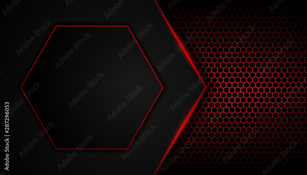 Wall mural abstract red light on hexagon dark background. metallic texture layout frame technology innovation c