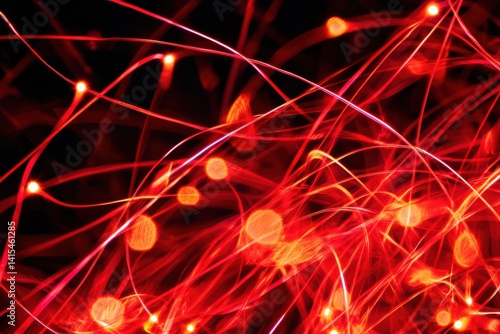 Wall mural abstract red light trails and bokeh effect on a dark background - Wall murals Wall mural abstract red light trails and bokeh effect on a dark background - Wall murals