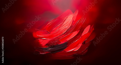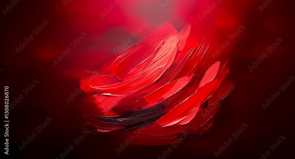 The watermark will not be included on Wall mural.: Abstract red shape with flowing, dynamic brushstrokes against a dark backdrop, creating depth and mo