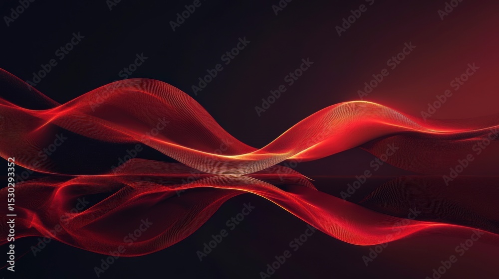 The watermark will not be included on Wall mural.: Abstract red wave flowing on dark background with reflection -