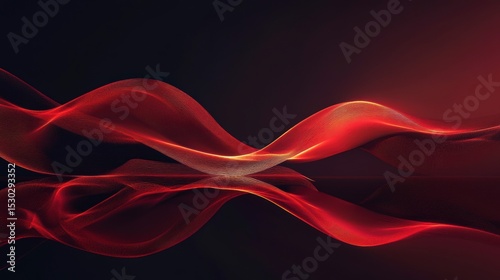 Wall mural abstract red wave flowing on dark background with reflection. - Wall murals Wall mural abstract red wave flowing on dark background with reflection. - Wall murals