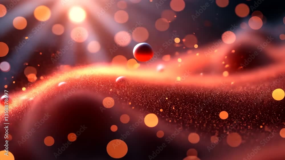 Abstract red wave with bokeh effect of floating spheres and particles in dark backgroundWall mural