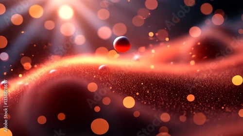 Wall mural abstract red wave with bokeh effect of floating spheres and particles in dark background