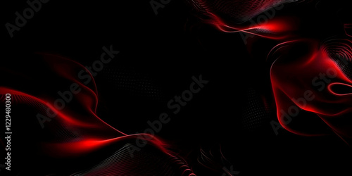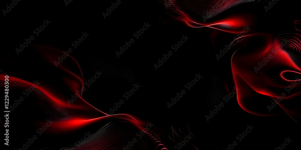 The watermark will not be included on Wall mural.: Abstract red waves flow gracefully on a dark background, creating a dynamic and fluid visual -