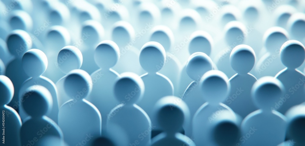Wall mural : Abstract representation of a crowded gathering of faceless figures emphasizing unity, connection, an