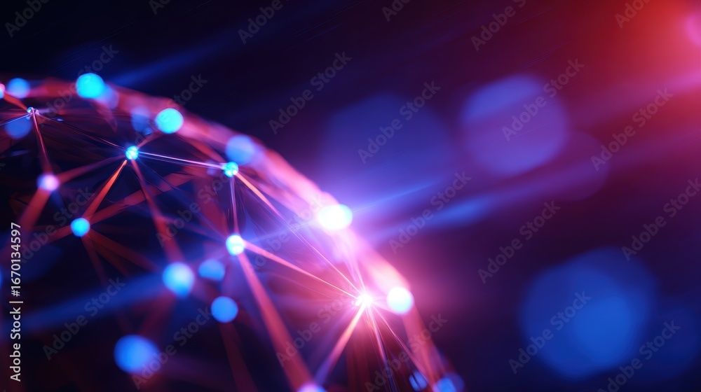 The watermark will not be included on Wall mural.: Abstract representation of a glowing network sphere with vibrant lights and blurred background effec